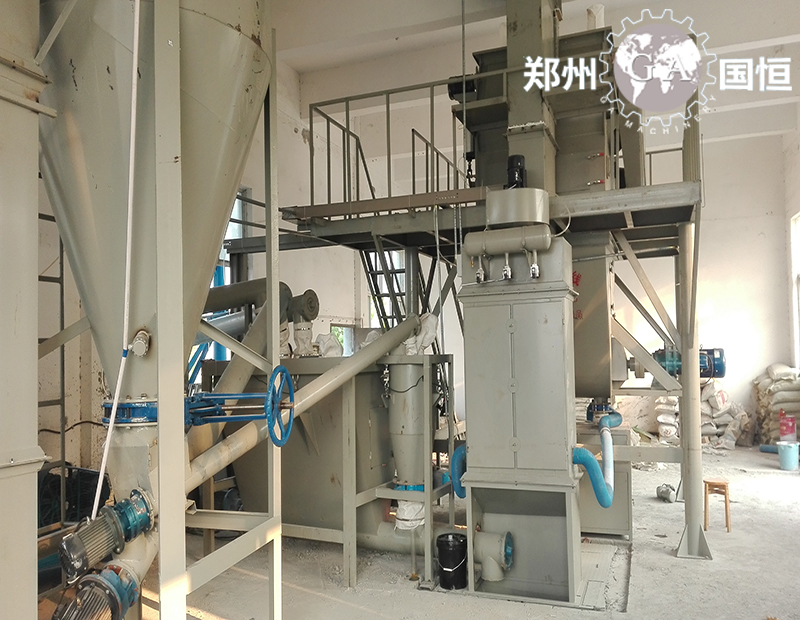 該生產線是我公司自主研發的用于生產灌漿料/壓漿料等特種砂漿專用成套設備。生產線主要包含原料儲存罐、螺旋輸送機、添加劑自動計量系統、斗式提升機、預混倉、無重力混合機、成品倉、自動包裝機、除塵器、控制系統等,產量常在3-10萬噸/年。